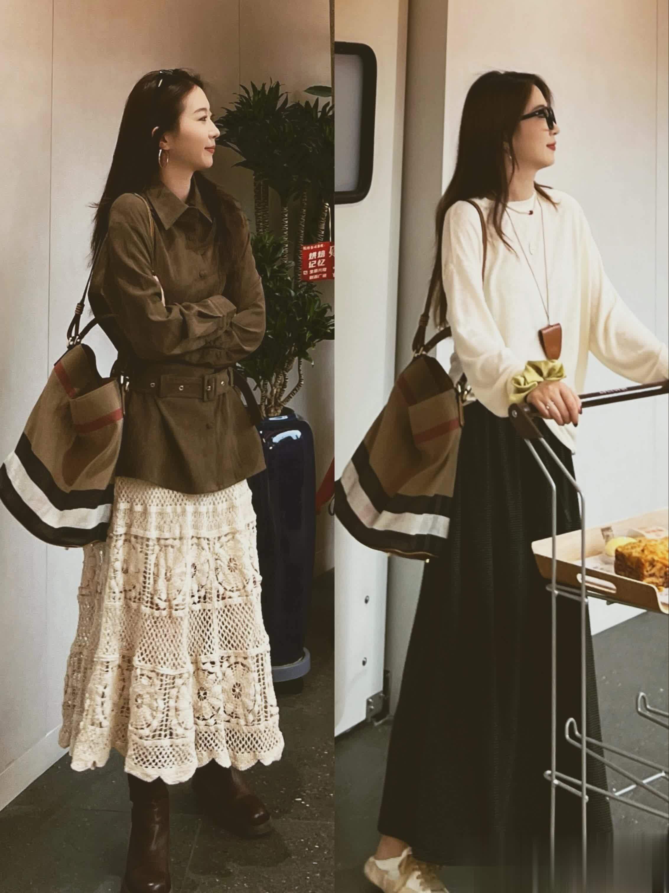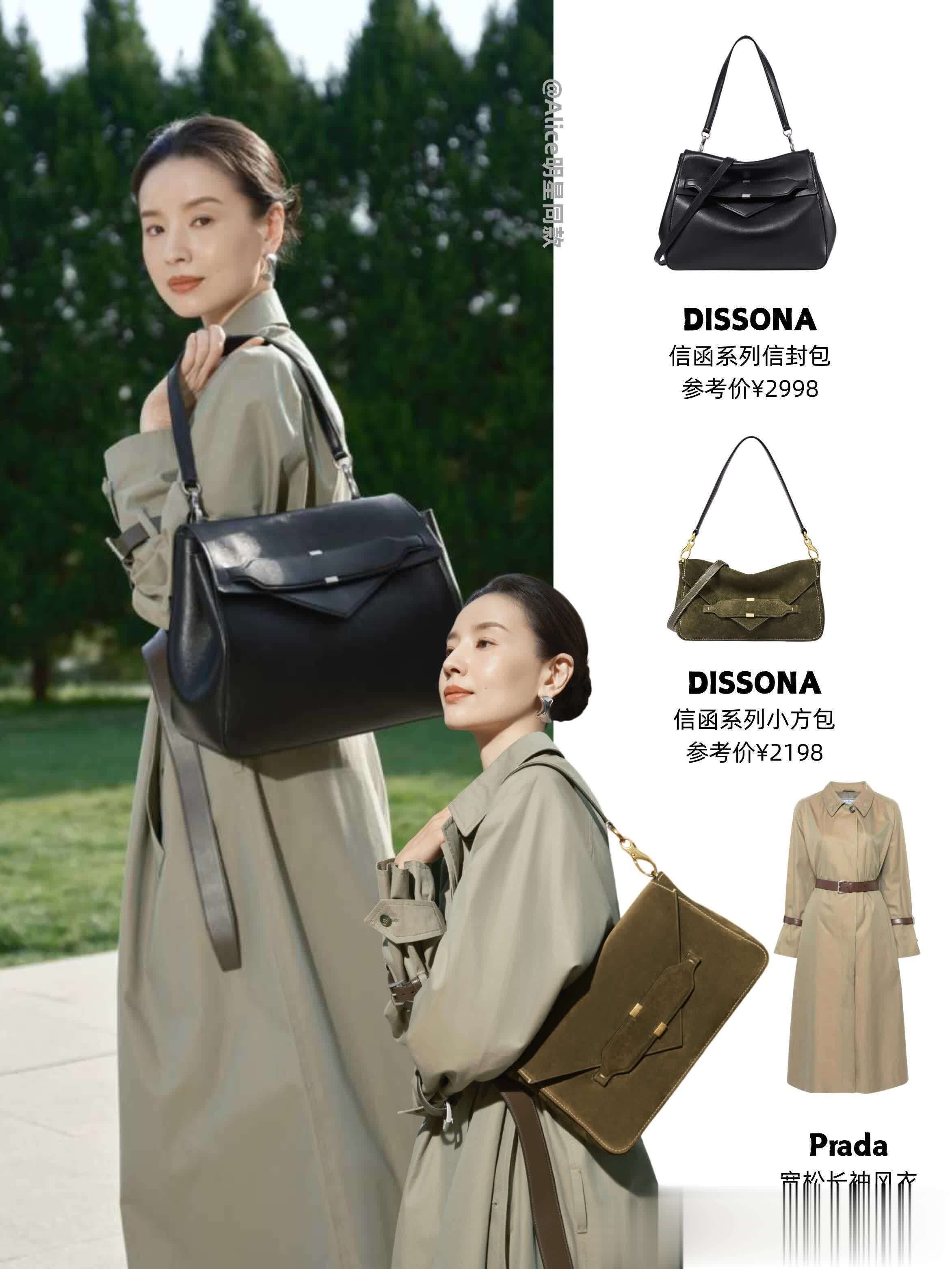 右上角的橄榄绿托特包,我愿称之为“秋日氛围神器”!这个颜色高级到尖叫,搭浅绿风衣(比如图里配Prada风衣那套),文艺感直接拉满,周末逛公园、拍落叶照背它,朋友都得问“在哪买的这么会搭”~托特包版型超能装,雨伞、水杯、墨镜一股脑塞进去都不臃肿,主打一个“实用又吸睛”~